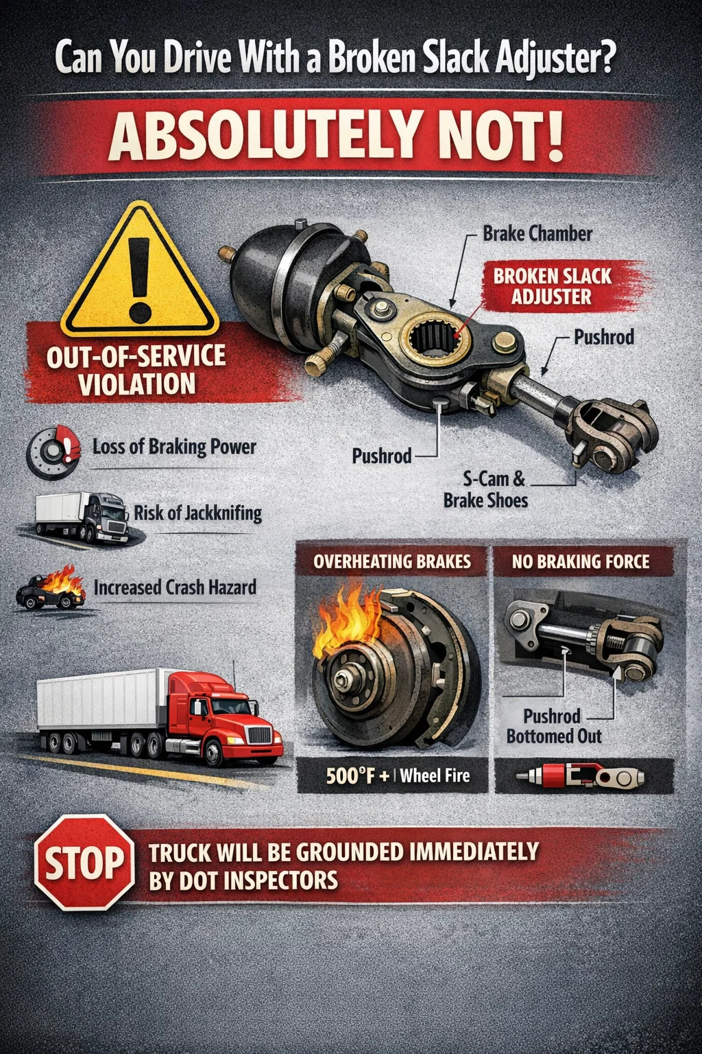 Is é an freagra gairid ní fíor. Ní féidir leat feithicil thráchtála a thiomáint go dleathach nó go sábháilte le coigeartóir bhog atá briste, mífheidhmithe nó atá coigeartaithe go míchuí. I súile na Roinne Iompair (DOT) agus cigirí sábháilteachta, briste coigeartóir bog is sárú “as-seirbhíse” é. Má tá tú gafa ag oibriú feithicle leis an locht seo, cuirfear do thrucail ar talamh láithreach ag an láthair iniúchta.