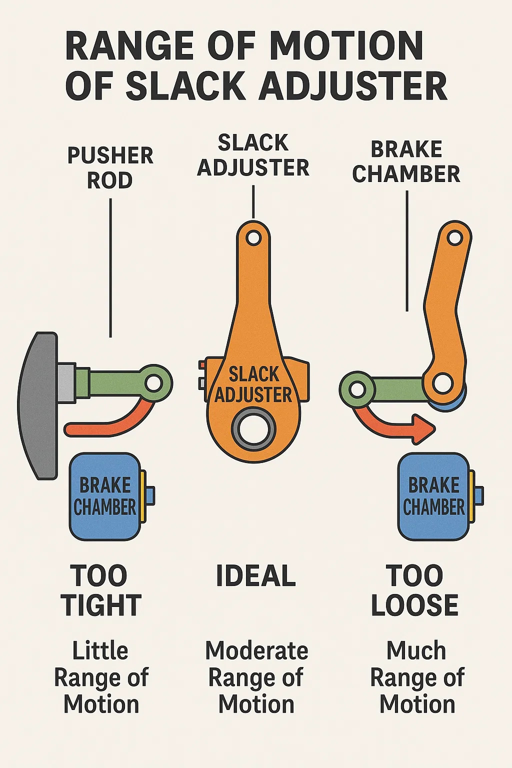 Tagraíonn an "raon tairiscint," nó níos gairmiúla, an stróc coscáin, don achar a ghluaiseann an coigeartóir slack nuair a bhíonn an slat bhrúite á tharraingt le linn an chórais coscáin aeir a ghníomhachtú.