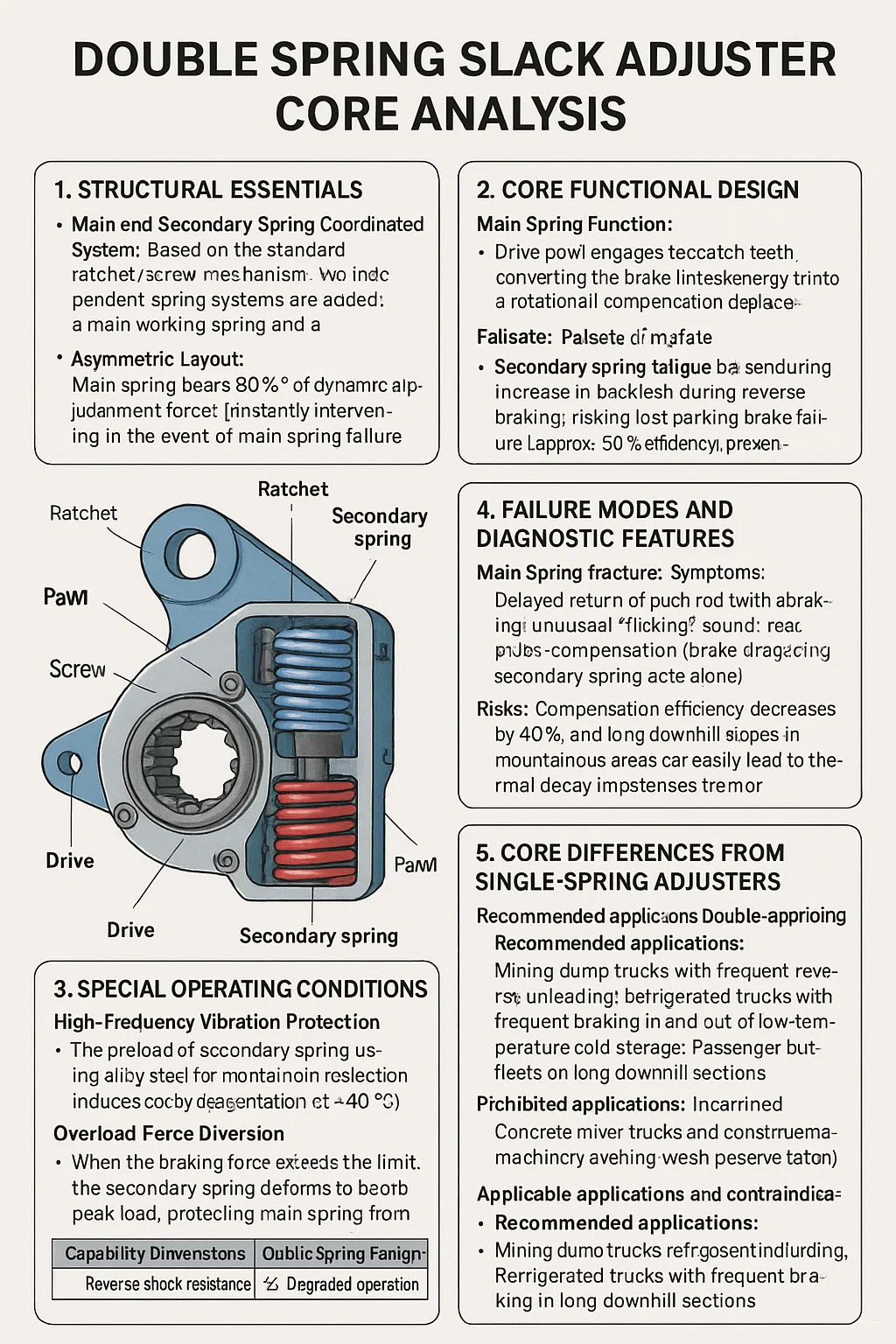 Failsafe: Má bhíonn na príomh -shosanna earraigh, glacann an t -earrach tánaisteach láithreach le cúiteamh íosta a choinneáil (thart ar 50% éifeachtúlacht), rud a choisceann teip coscáin mheandarach.